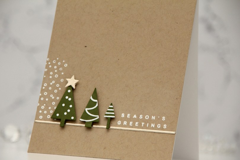 This was my inspiration for my card. Very clean and simple with lots of white space and the snow flurries in the background to ground the trees. It’s an awesome card!