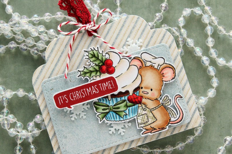 Hi, crafty friends! It’s the first Sunday of Advent, and I have a fun gift tag to share today featuring the adorable Baking Fun image from Purple Onion Designs, illustrated by Pei – I’m such a big fan of her illustrations!! I did a lot of baking last year for Christmas – SO many different types of Christmas cookies and sweets. This year, I haven’t even started yet. I have a few favorites I might end up making, I haven’t decided yet. Anyway, back to the gift tag.