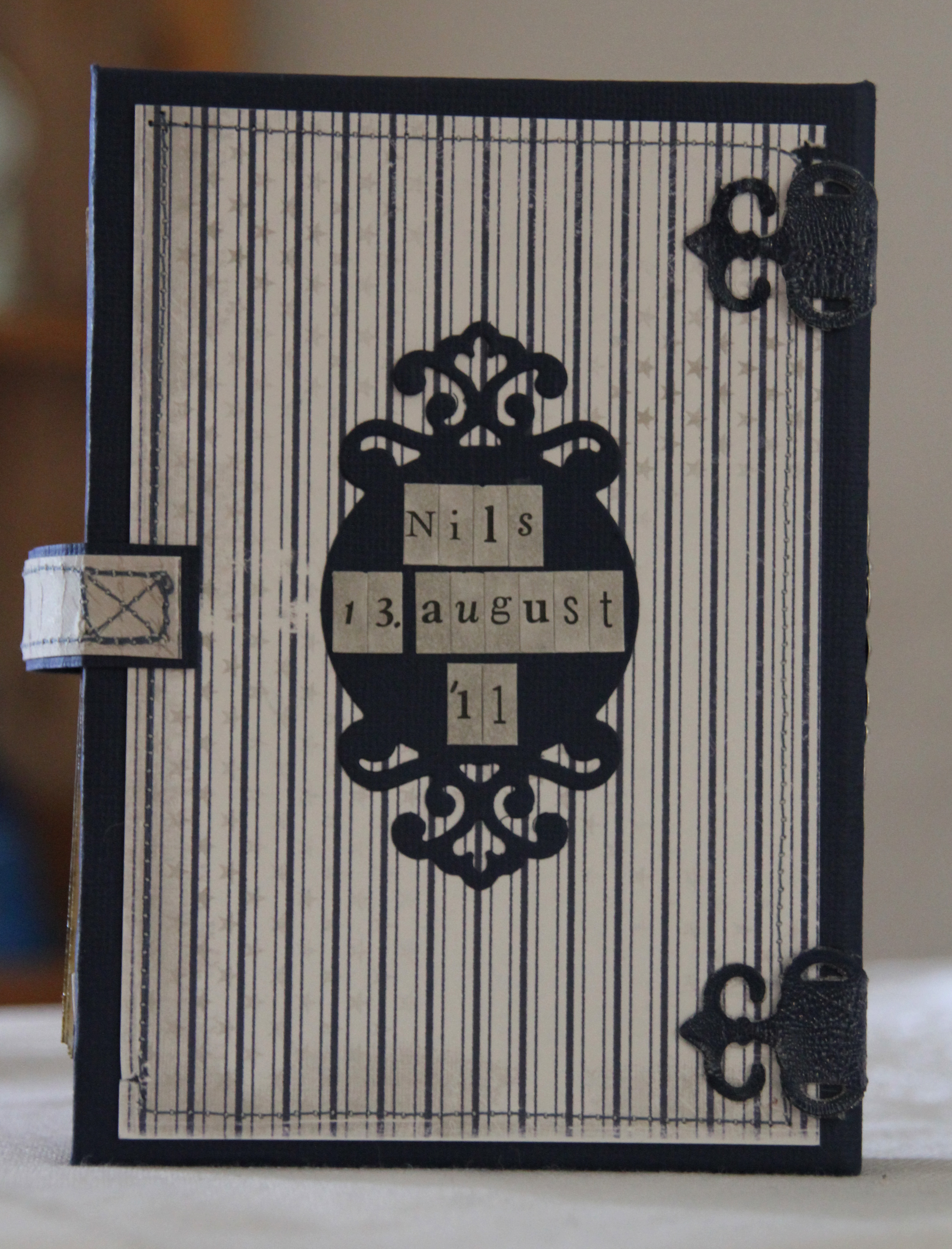 Baksiden har jeg gjort veldig enkel. Brukt en spellbinders-die som jeg har satt på hvite MM tiny alphas på som jeg har fargelagt med W3 for å matche det grå i mønsterarkene. Jeg må prøve å finne ut hvorfor bokeskekortene mine blir såpass mislykkede, jeg har jo så lyst til å lage de like fine som alle andre klarer rundt omkring i blogland.