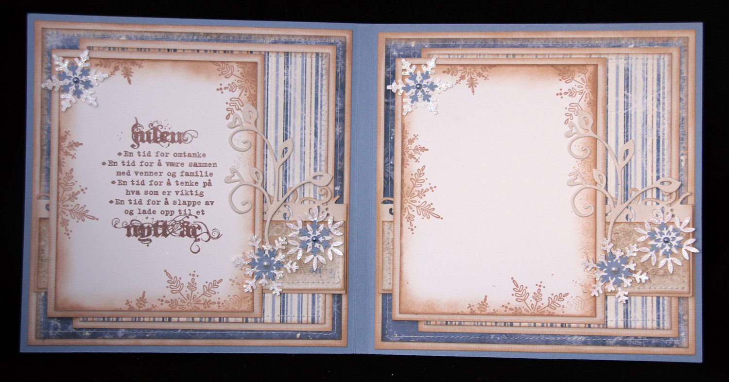 Som vanlig ca. samme oppsett på innsidene som på fronten. Stempler fra Magnolia (snøflak) og Kort og Godt (tekst).