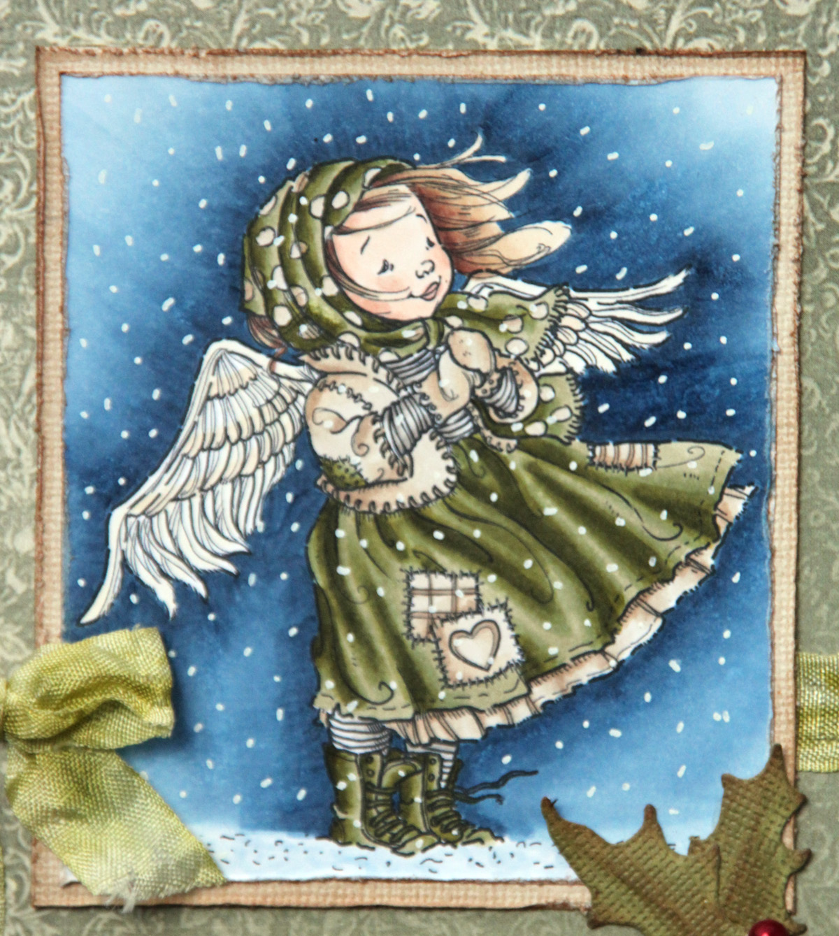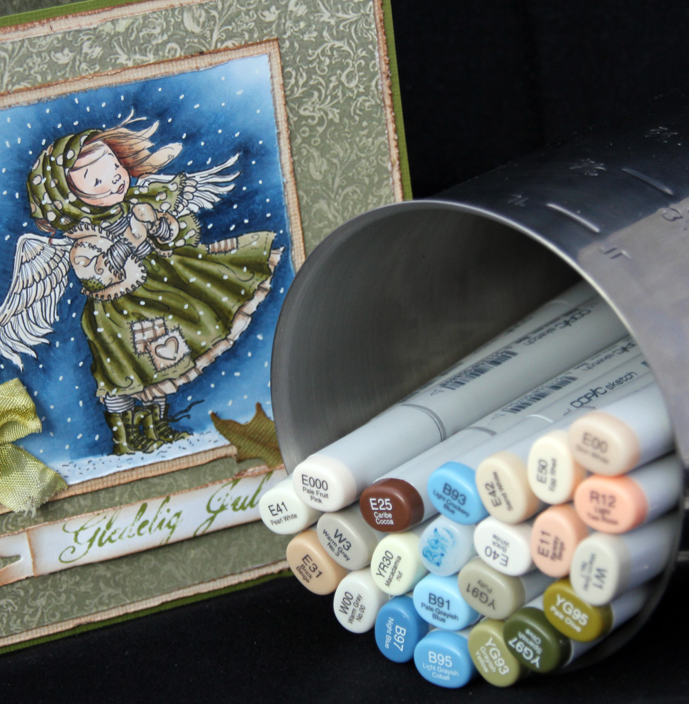 Ragged Angel from Mo Manning is colored with Copics, before I’ve made snowflakes with my favorite white pen: Pilot Super Color White (Extra Fine). The Copics I’ve used are pictured at the bottom of this post.