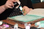 Du kan også gå over motivet med en vannpensel etterpå, slik Tim gjorde her (motivet som delvis ble skjult av varmepistol på forrige bilde er nå helt til venstre på dette bildet).