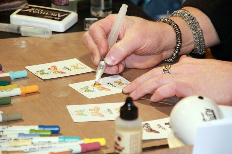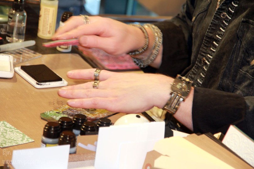 Han viste også frem noen tips og triks med Inkssentials Ink Refresher, litt med Perfect Pearls og litt med Kraft Resist som var greie å få med seg, men jeg får ikke lastet opp videosnutten min, så det får duge med bortimot 50 bilder fra to demoer proppfulle av inspirasjon!