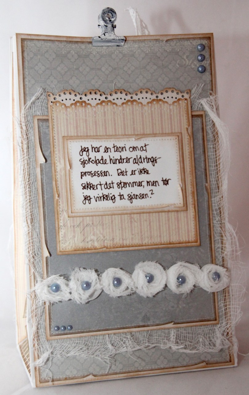 Samme oppsett på innsidene, veldig enkelt. Og veldig greit med distress markers som man også kan bruke til å skrive med (det er ingen hemmelighet at jeg liker at fargen på teksten min koordinerer med resten)!!