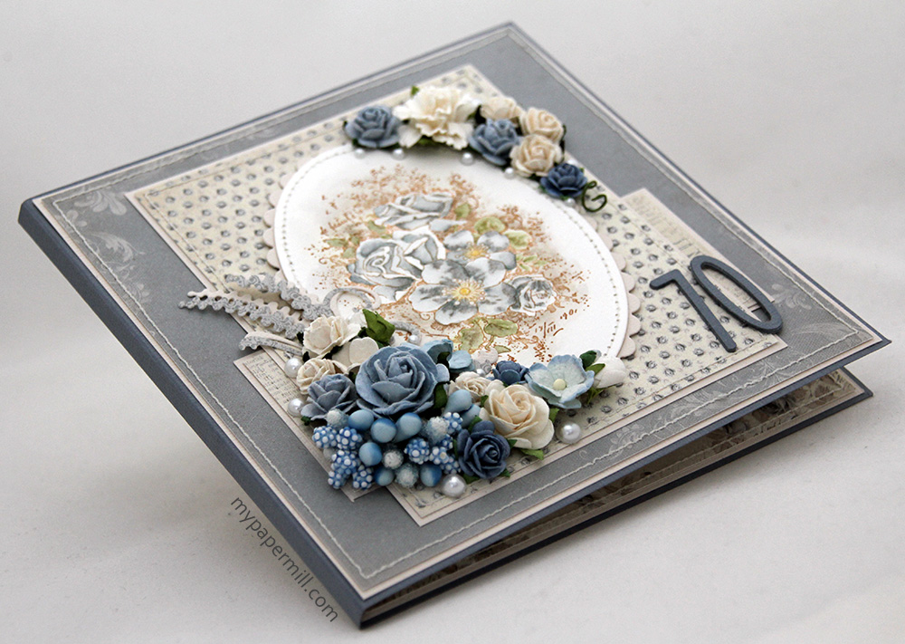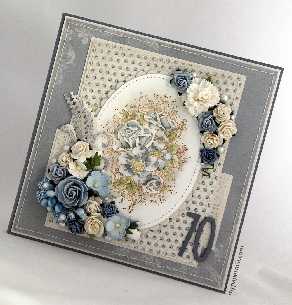 The back. Another Stempelglede text stamp and some more airbrushing. The hydrangeas are from Petaloo.