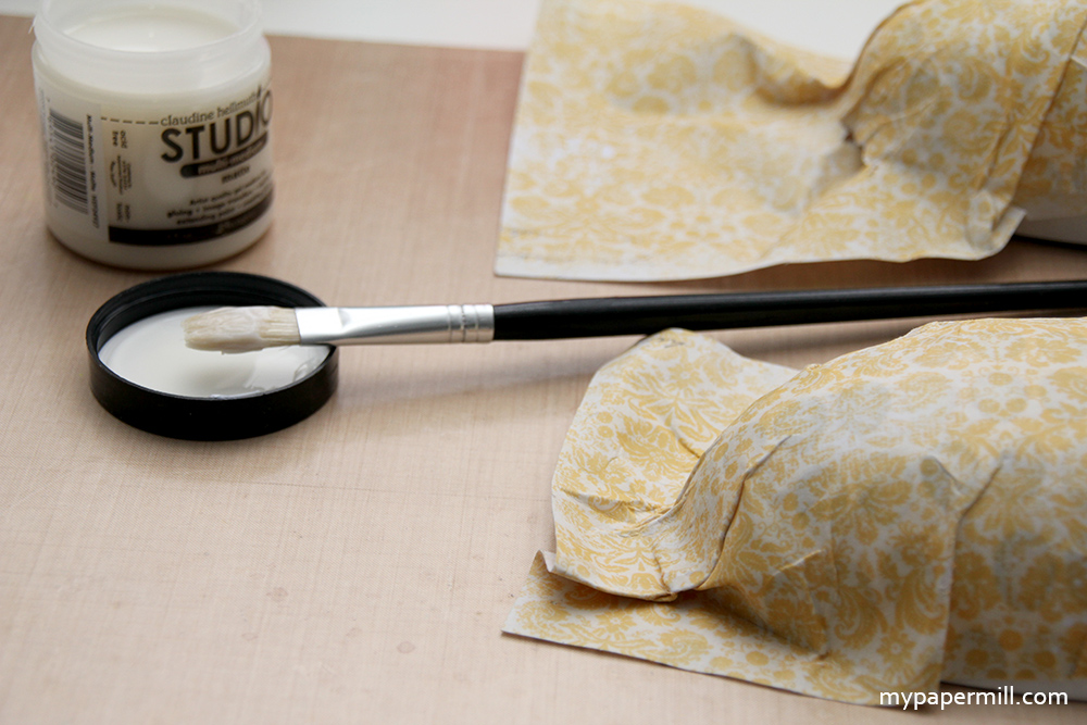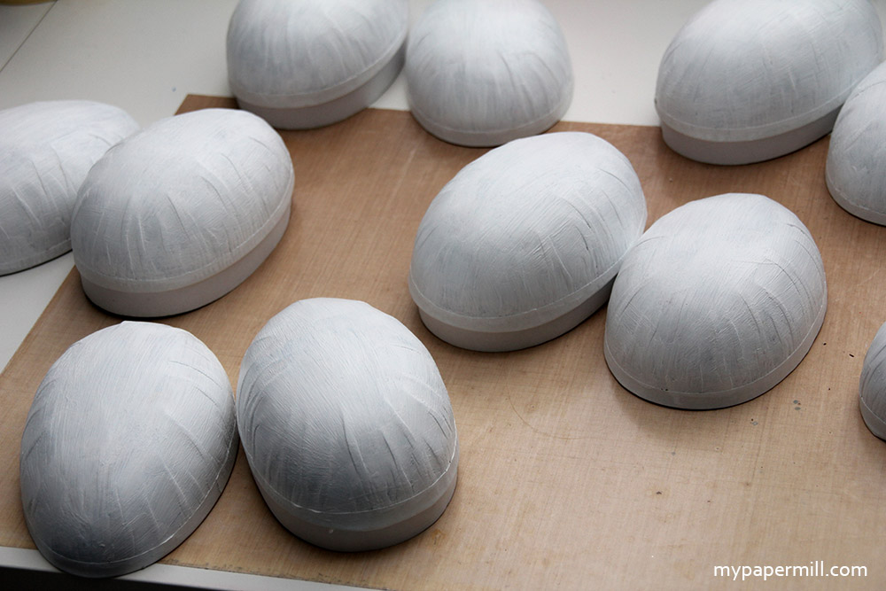 Jeg dekte hele egget med multi medium matte og la arket oppå og formet det etter egget. Da det var tørt klipte jeg av det overflødige papiret.