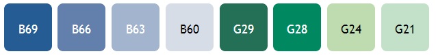 B60-serien til Copic har en fantastisk klar blåfarge som etter min mening ikke brukes nok. Jeg har brukt de samme grønnfargene her som på det rosa (og også det lilla kortet), men droppet den aller lyseste.