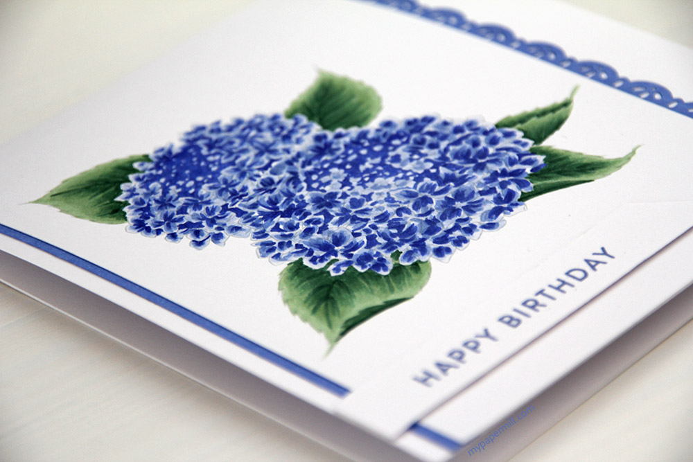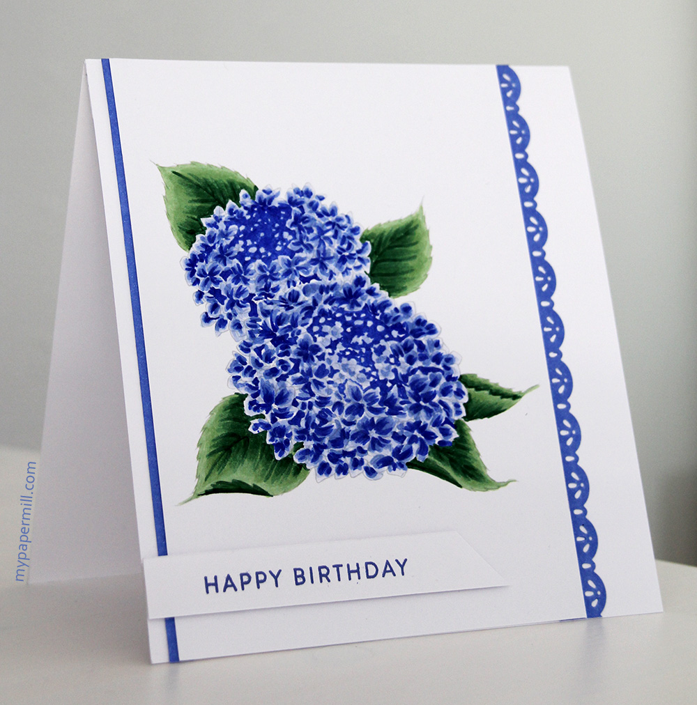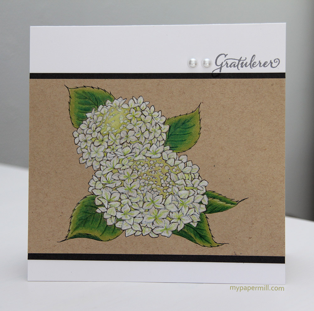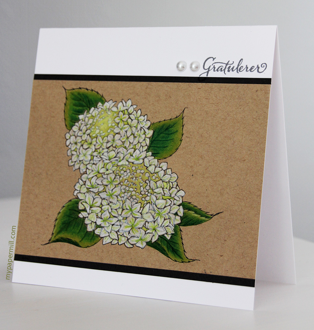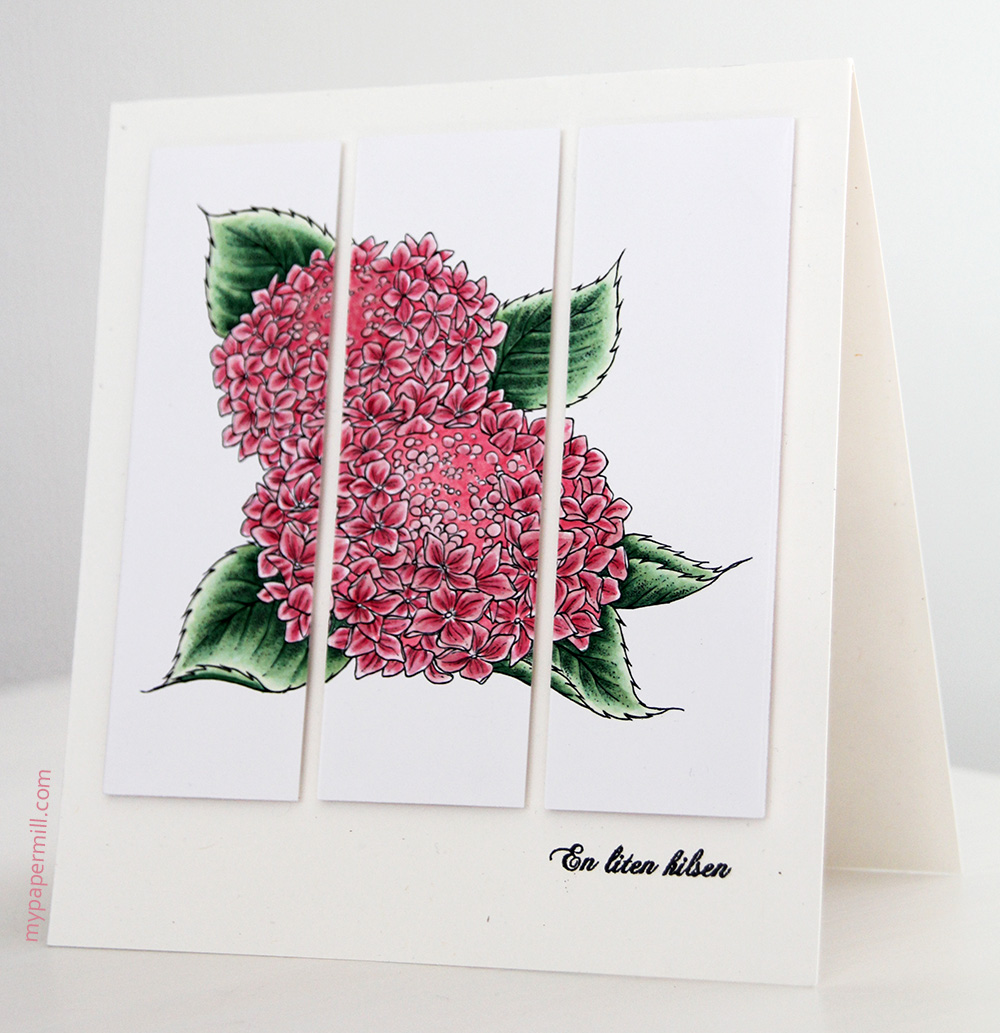 Har man god hukommelse er det mulig man husker dette lilla hortensiakortet jeg publiserte i begynnelsen av måneden? Jeg gikk litt amok med det motivet og endte opp med å fargelegge tre varianter til.