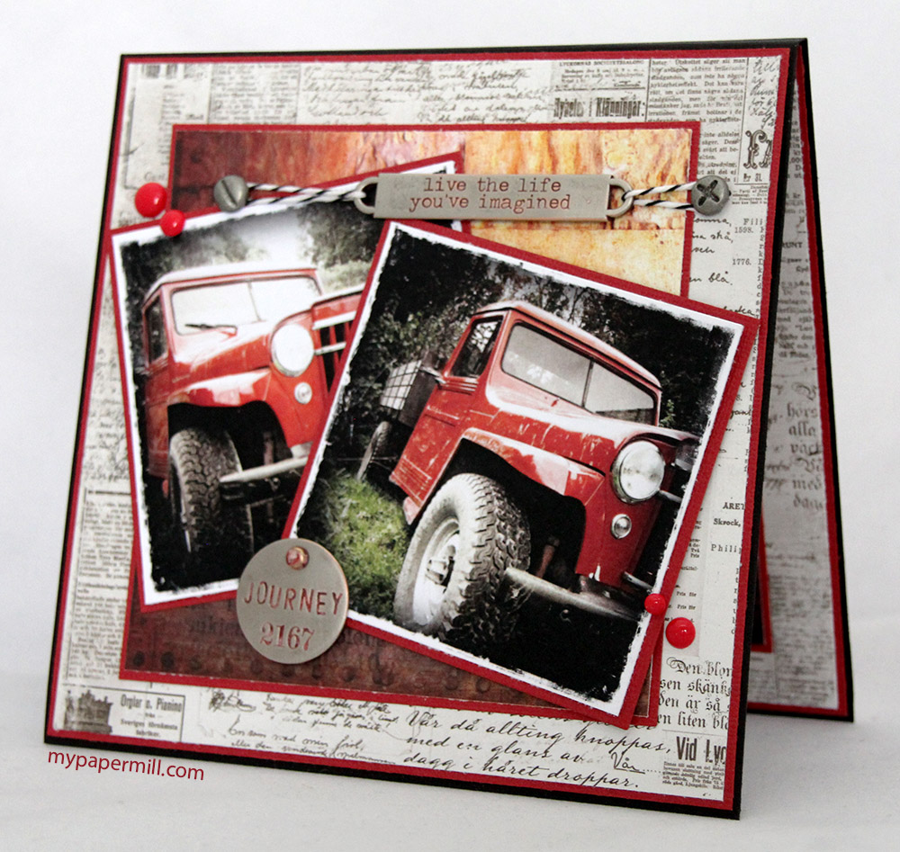 I dag har vi en ny utfordring på NSD-bloggen, og her er mitt lille bidrag denne gangen. Bildilla-arket fikk jeg dilla på da det havnet i postkassen i februar en gang, og jeg lagde tre bilkort av arket og brukte opp rubbel og bit på de tre kortene. Det er så gøy å bli så inspirert når man ikke venter det!