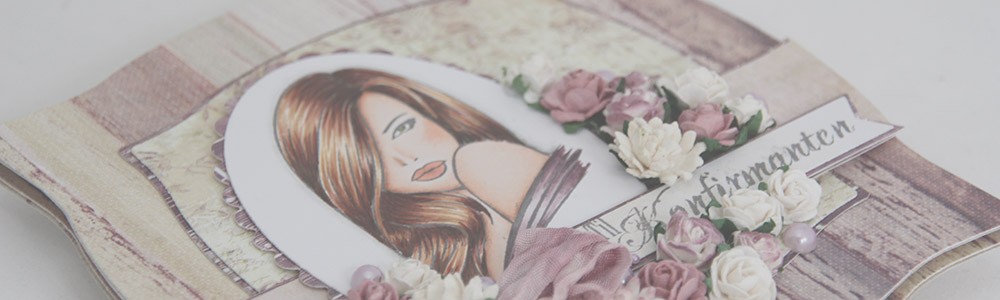 Ark fra Grandma’s School Book-serien på dette kortet. Knappen kommer fra Papertrey Ink og seam bindingen er farget med mange forskjellige Copics, det var vanskelig å finne riktig farge, så her har jeg brukt både RV-familien, YR-familien og R-familien.