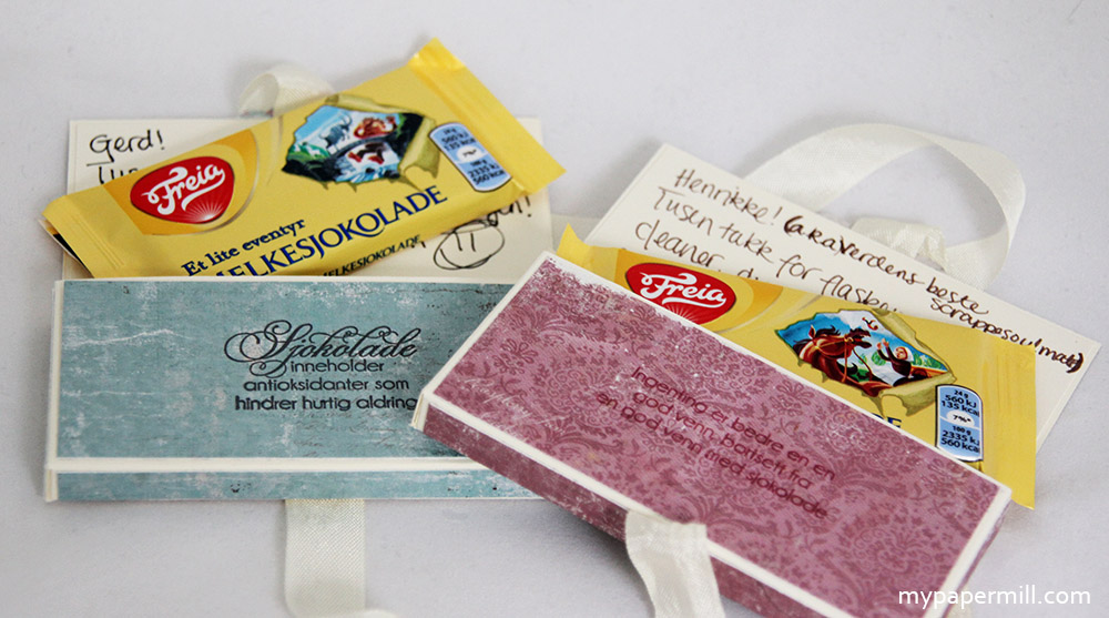 Denne gangen har jeg fargelagt det søte Chocolate Heart-motivet og laget små esker med plass til en eventyrsjokolade inni. Kjekke, små takkegaver. Og veldig greie å bruke rester til!