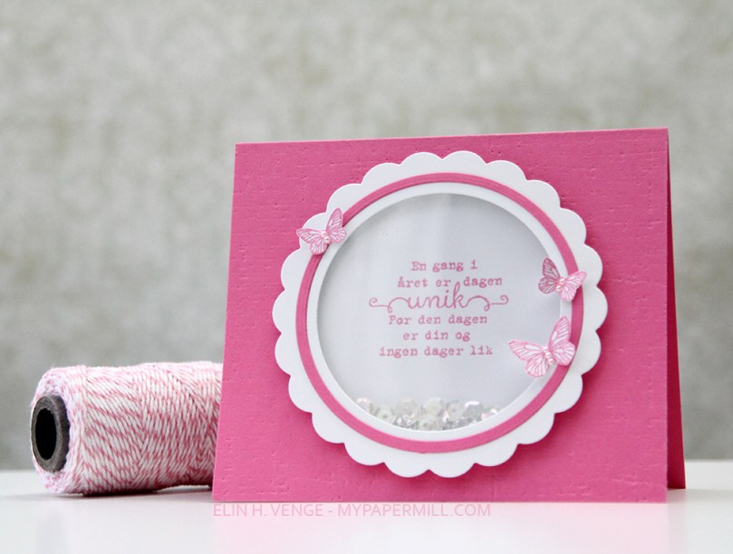 I februarnummeret av Ett trykk hadde jeg et shakerkort med et lite triks for å lage selve shakerboksen. Istedenfor å bruke limputer tett i tett i tett stanser jeg nemlig ut litt mosegummi som jeg bruker til å få dybden jeg trenger.