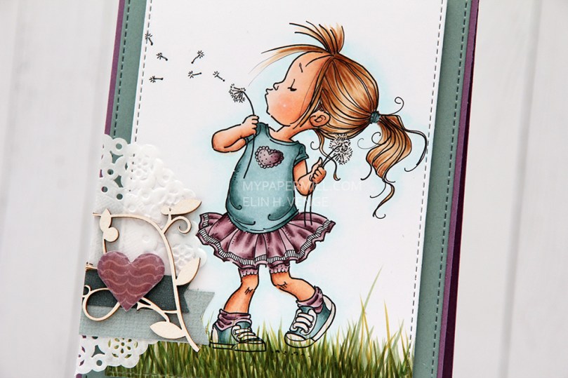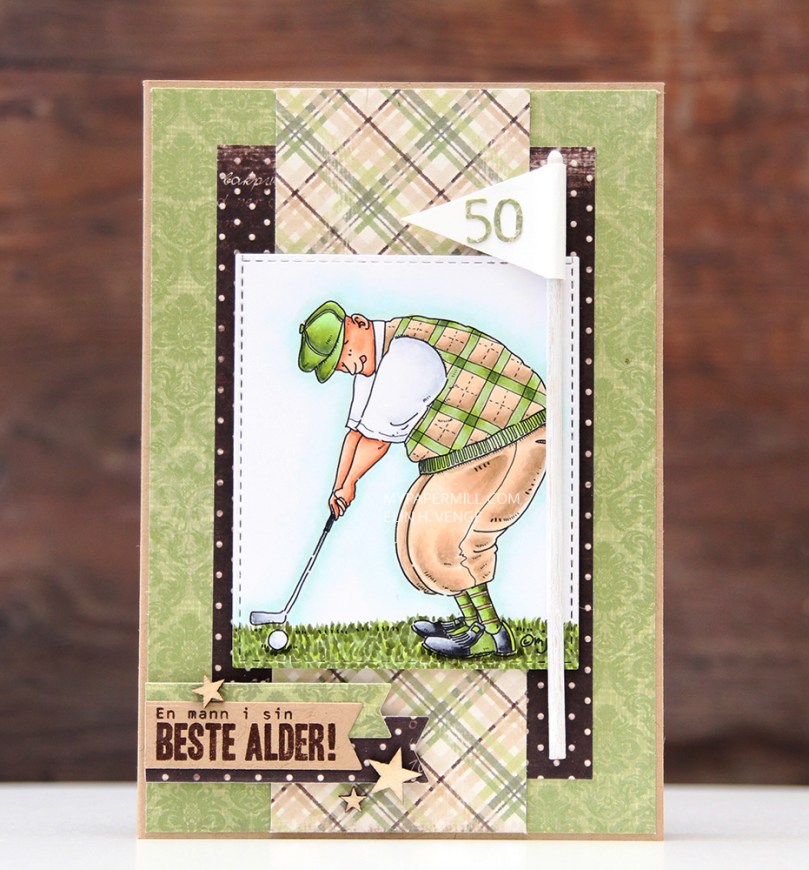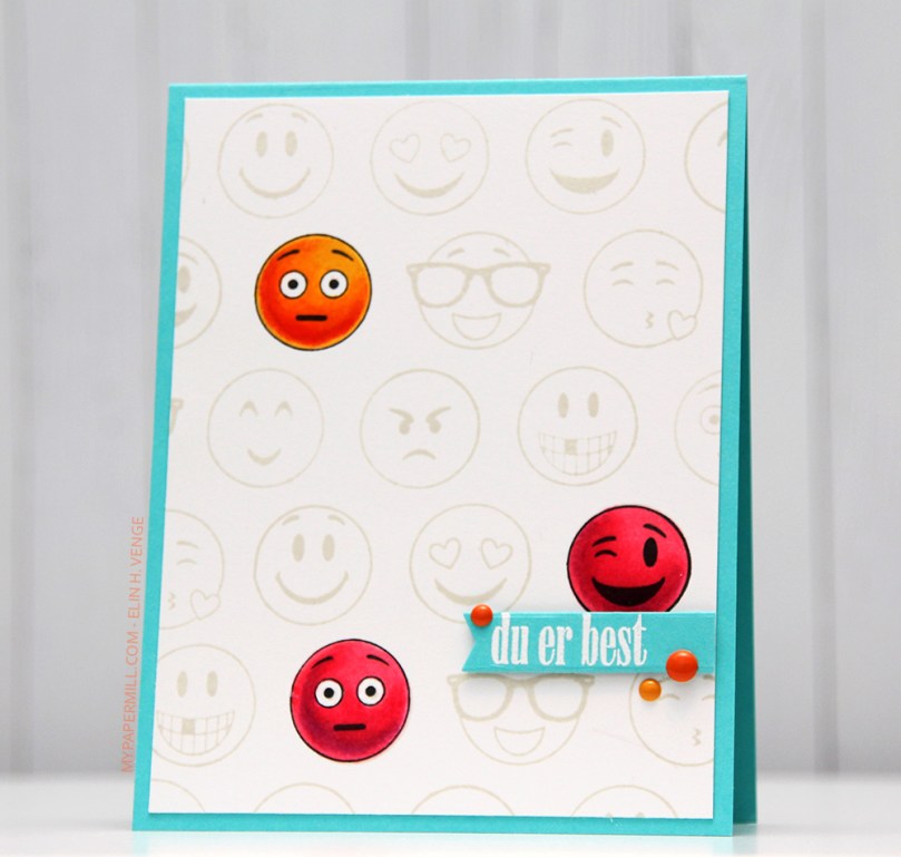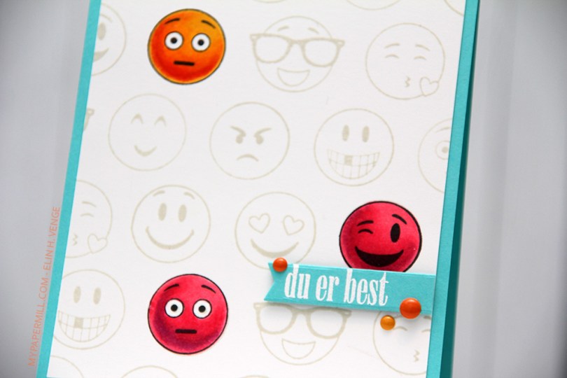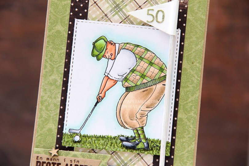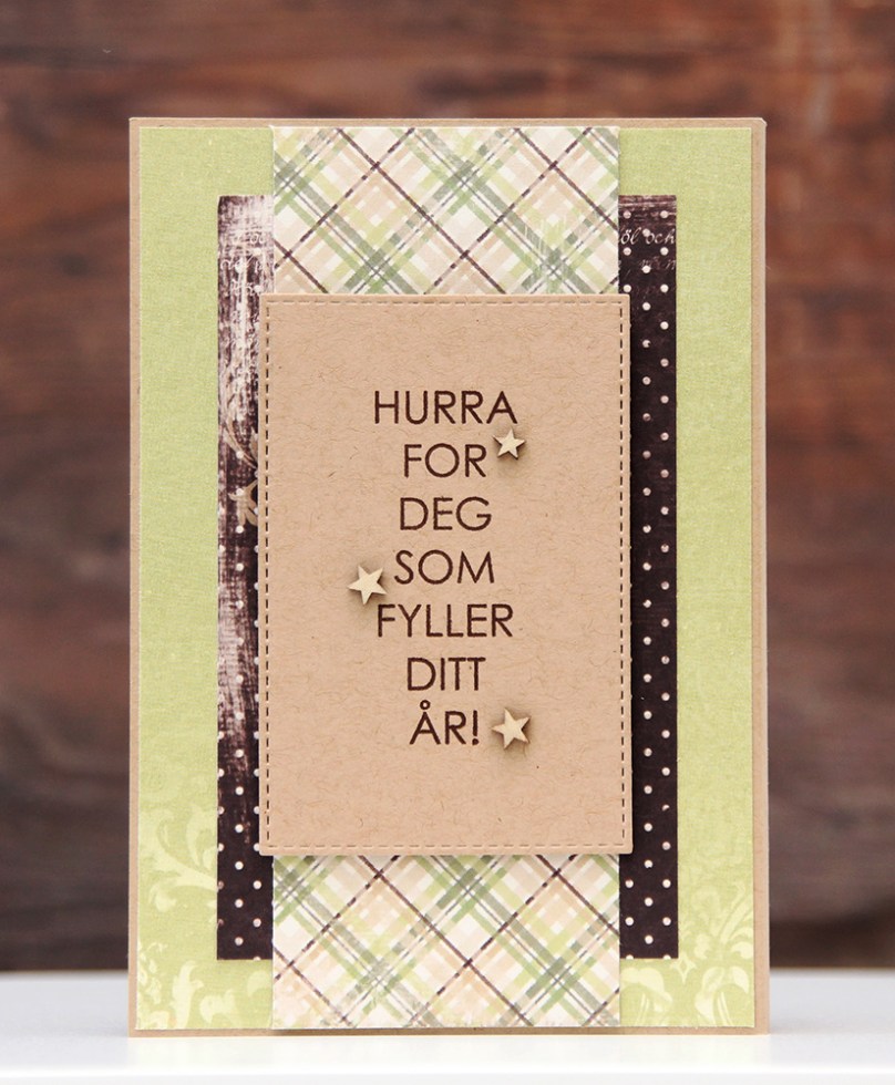 The way I organized my frames on my card made a little bit of room for a sentiment towards the top of the card. It was just the right size for a sentiment, and the stamp I chose from the Grattis stamp set from Norsk Stempelblad AS was the PERFECT fit.