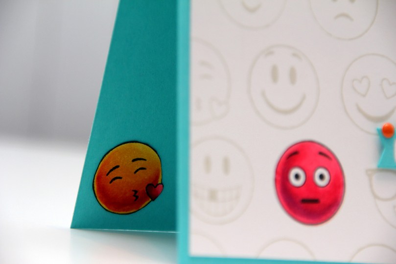 The bears and the frames are popped up from the card base for dimension. I put the bears on foam tape, and diecut fun foam to put behind the frames. That way I didn’t have to cut foam tape into tiny strips, the narrowest part of the frames is only 3mm wide. With fun foam it also looks much better from the sides. I colored the edge of the fun foam with colors that coordinate with the cardstock. A clever little trick, that way it looks like I have lots of colors of fun foam, even though I’ve mostly used white (for some reason I had orange fun foam, too, so I used that for the orange and red frames).