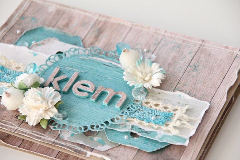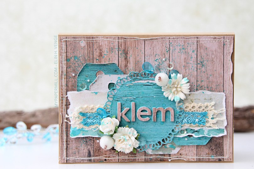 Igjen har jeg brukt ark fra Summer Feelings-kolleksjonen til Studiolight, men denne gangen falt valget på ikke bare turkis, men også arket med trestruktur. Jeg har revet og krøllet kanter også på dette kortet. Sydde med symaskin noen runder rundt på bakgrunnsarket for å få en litt løs og ledig sømkant.