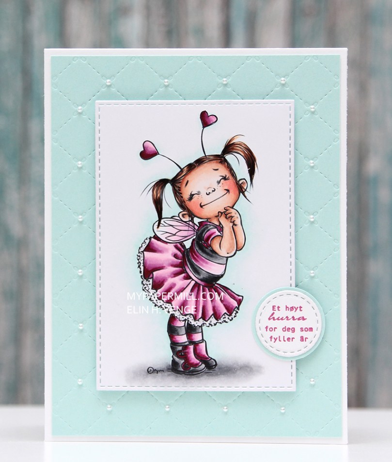 Hi! I’ve got what I believe to be the simplest birthday card I’ve ever created today. I had to go with Bee Mine from Mo’s Digital Pencil, colored during Cathy Racoosin’s last 30 day challenge back in June.