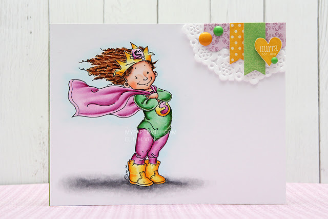 …birthday cards. I truly believe that. Having birthday cards on hand is so practical, so I always jump at the chance to make them. I made this one really simple, focusing on Superduper Girl and just adding a cluster of patterned papers and embellishments. Easy peasy, lemon squeezy.