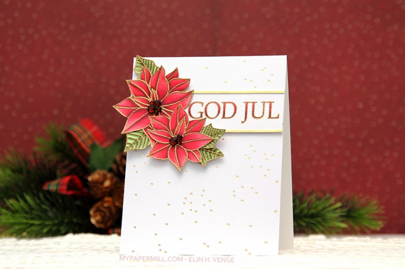 Jeg ville ha en enkel, men ikke altfor enkel bakgrunn på kortet mitt. Valget falt på et ark med folierte gulldetaljer. Prikkene går litt inn i arket og gir et letterpress-utseende som jeg virkelig liker.