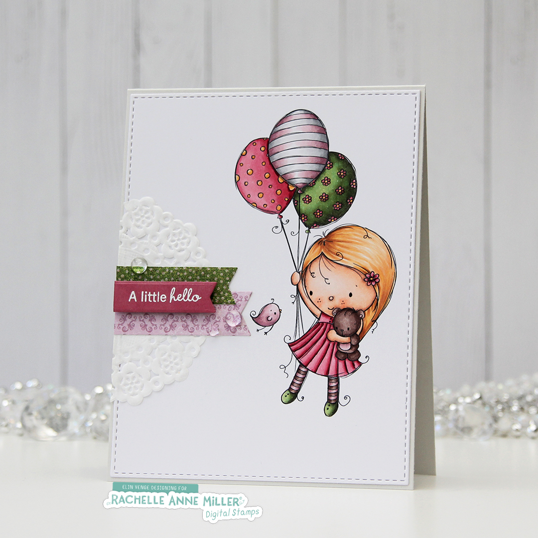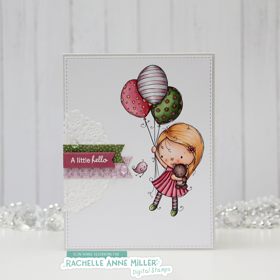 I colored up Balloon Ride for this round of the 30 day coloring challenge hosted by Kathy Racoosin, and I turned my image into a very simple card.