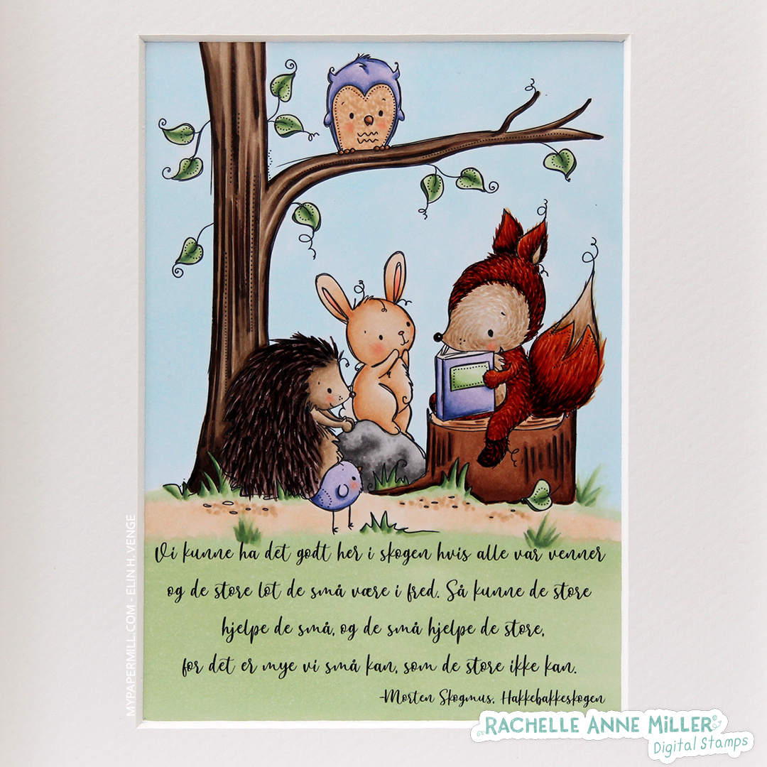 Hi, everyone! I’ve made something a little bit different today. This Storytime image from Rachelle Anne Miller was the perfect one to color up for a wall hanging to go in a toddler’s room.
