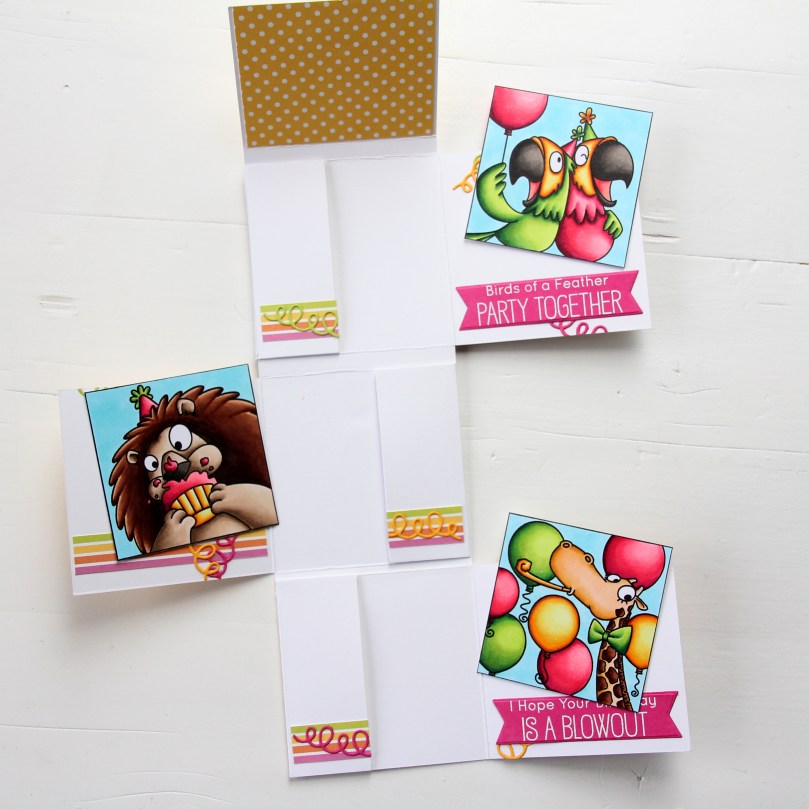 I did it. Very under the pump towards the end there, but I finished my entry into the Coloring Virtuoso category for the MFT Superstar contest. And I’m so happy with how it turned out. Looks like an ordinary landscape A2 card, but when you open it up, there’s more fun on the inside.