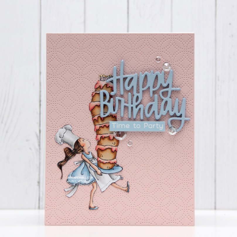 We’ve reached the last Wednesday of 2020, and it’s once again time to start making something that isn’t holiday related. I have a fun birthday card to share today, featuring Tall Cake, which is such an awesome image from Mo Manning. Super quick to color, too, even for me.