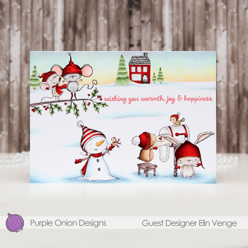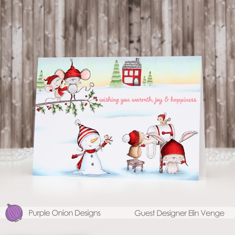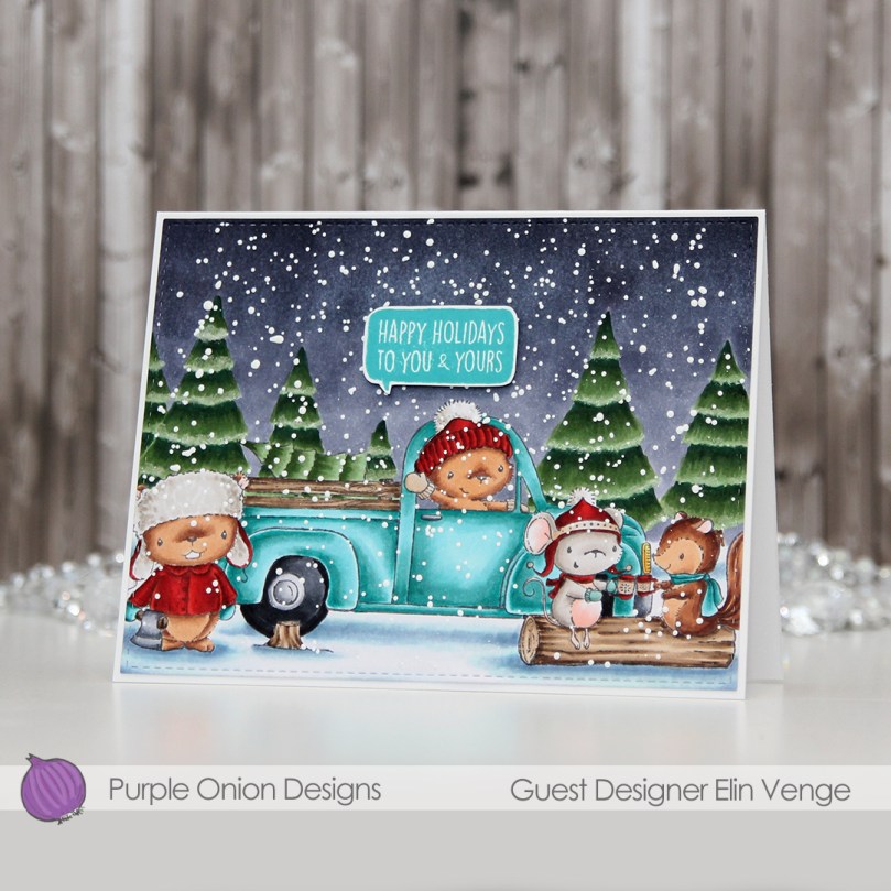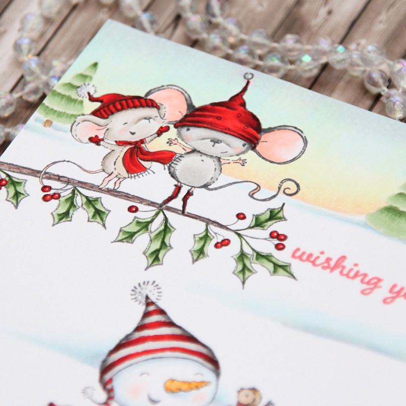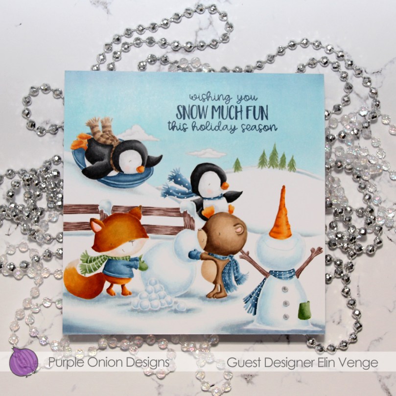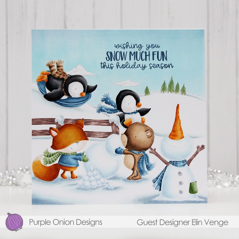 I colored the penguins with Copics and used the coordinating die to die cut this cute little waddle for the front of my card.