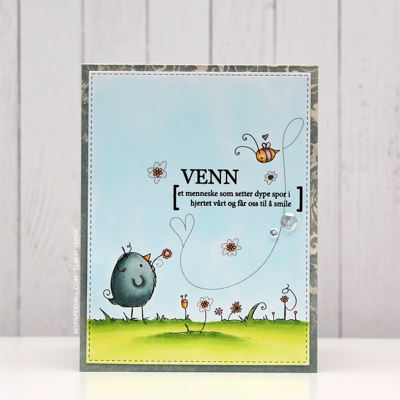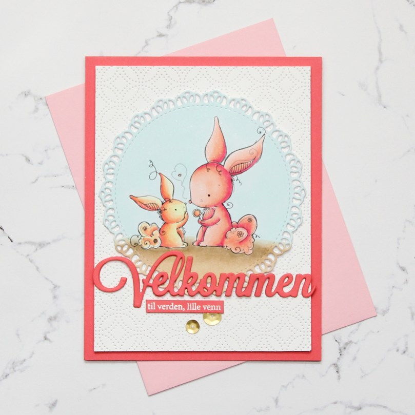 This one is definitely less dimensional than the other two cards, but the colors and the stacked sentiment still make it pop.