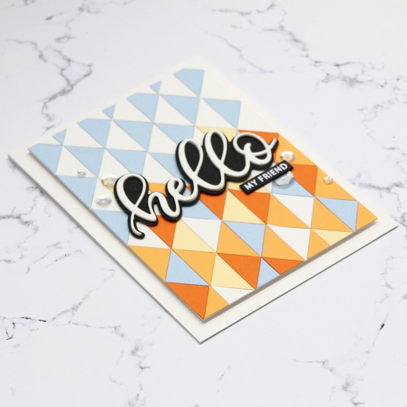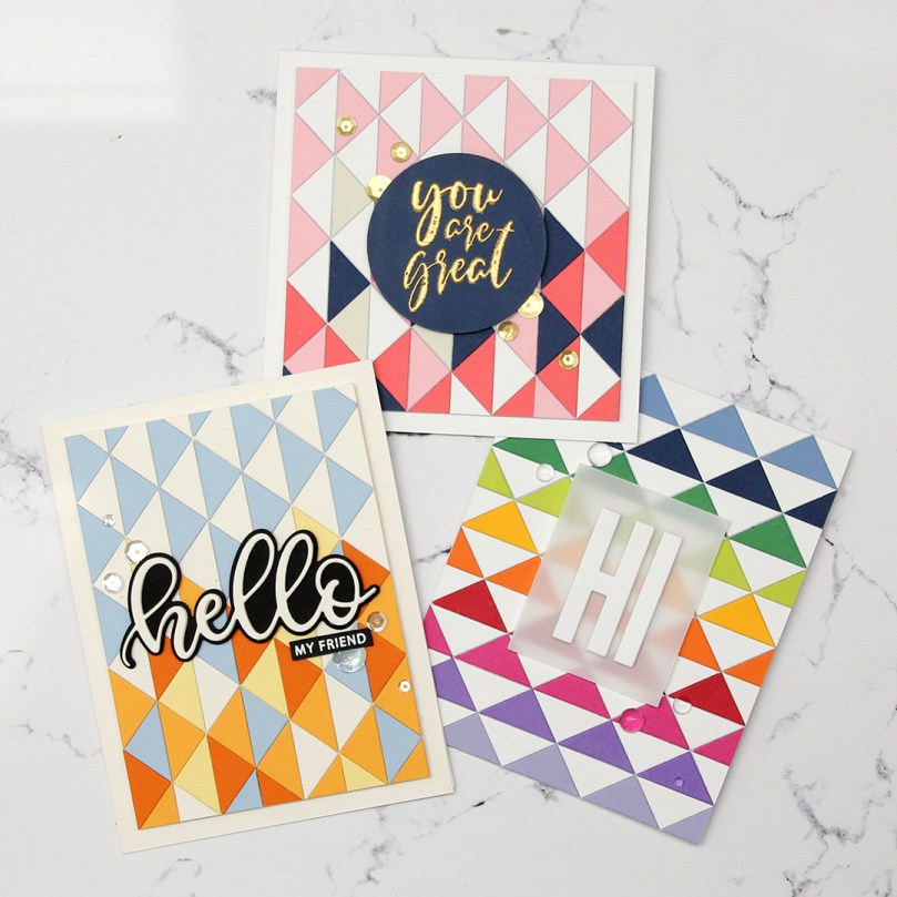 There you have it – 3 same but different cards using one fabulous geometric builder die. Obviously you could create triangles on your own without the die, but the die makes it so much easier and more accurate than I could ever hope to do on my own. And I’m super detail oriented and a bit of a perfectionist, so I’d definitely use the die!