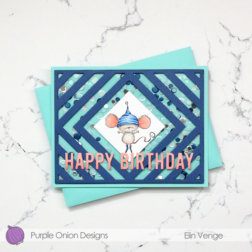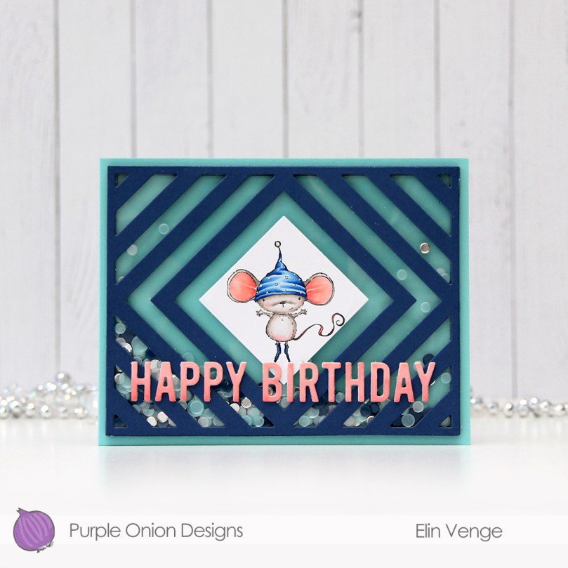 There’s quite a bit of dimension in this. Card base, five layers of walls for the shaker, a piece of acetate, die cut cover frame on top, then three layers of letters. Dimension is life!