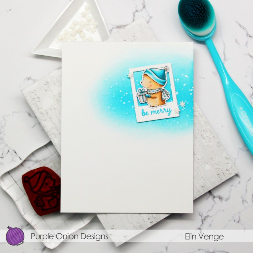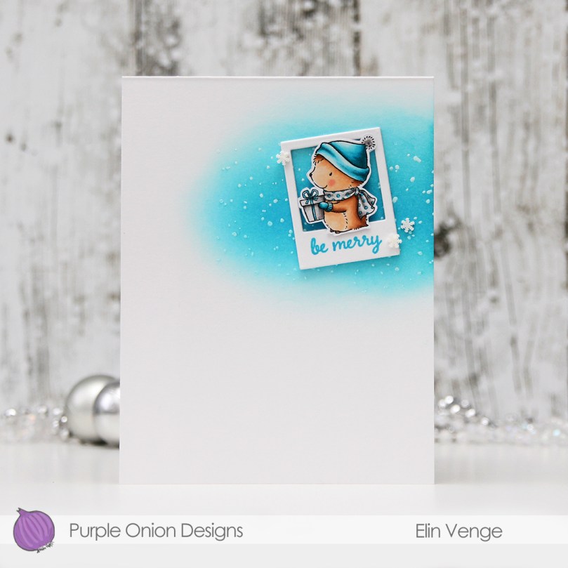 Hi, everyone! I have a very clean and simple Christmas card to share today, featuring little Timothy from Purple Onion Designs. I love this little hedgehog, he’s so cute.