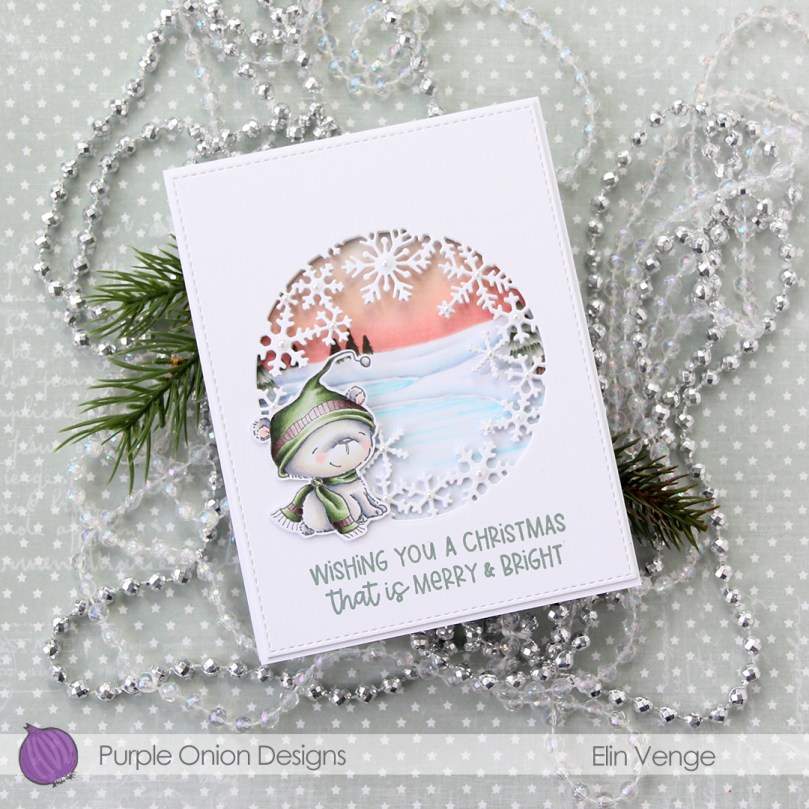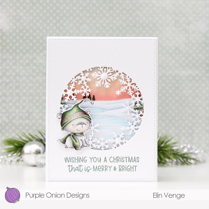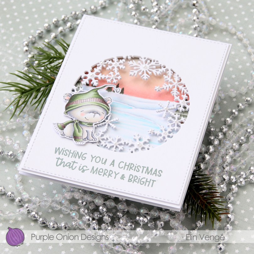 I stamped a sentiment from the Holiday Messages Sentiment set straight onto my card using Ocean Tides ink from Papertrey Ink, before adding the polar bear with 1 mm foam squares.