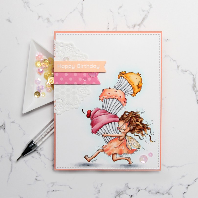 I used quite a few colors for this one. For the frosting on the pink cupcake, I also used R87, which is a color I’ve created myself.