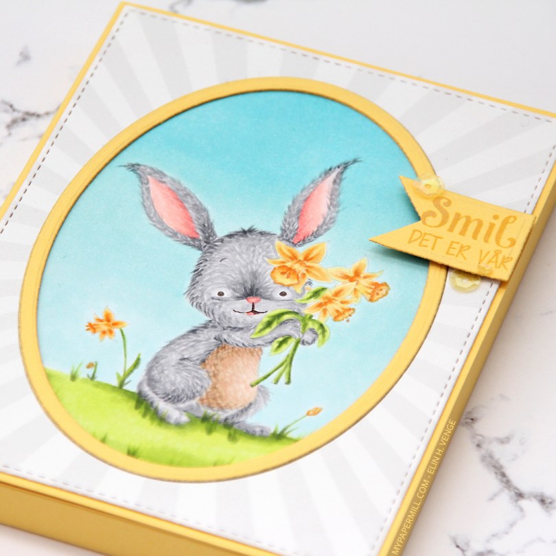 I actually made this card last year, for an Easter card swap. Easter cards aren’t really a thing in Norway, but because of lockdown last year, I figured what the heck. Easter to me is ten glorious days spent in the mountains. Skiing and playing in the snow all day, card and board games at night. Reading crime novels (a uniquely Norwegian Easter tradition), eating oranges and chocolate; it all belongs. Obviously there was no trip to the mountains last year, and I knew that it wouldn’t really feel like Easter for me at all, but I wanted to try to make someone else feel like it was still Easter.