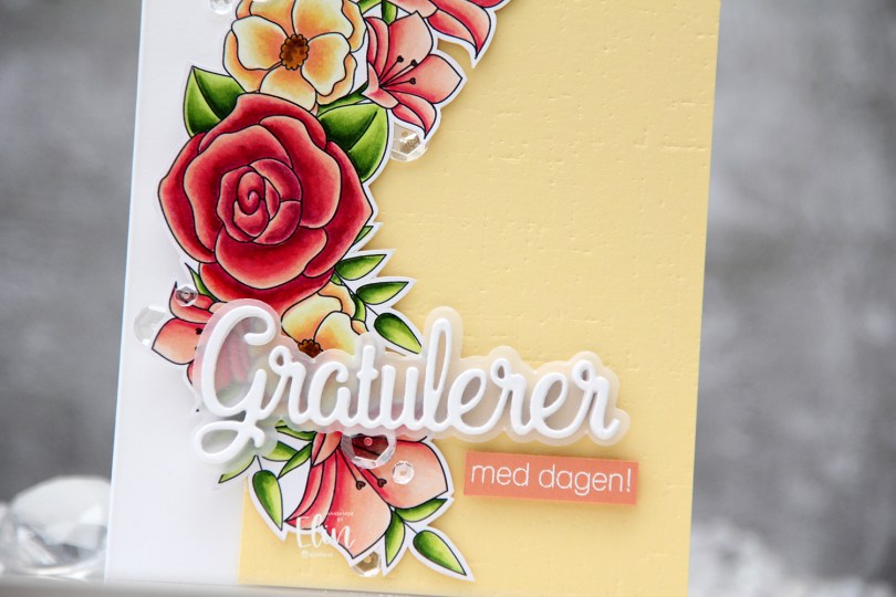 It’s a very simple image, and I decided to color it up using one of my favorite color combinations. I kept my two main colors going on the rest of the card as well.