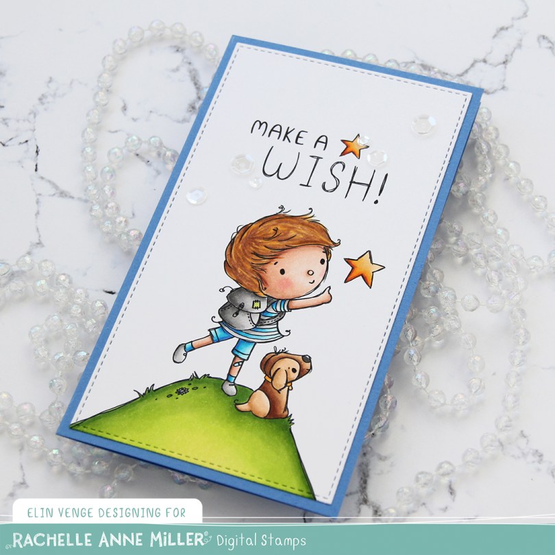 Hi, and happy Monday. I’m starting the week with this very simple mini slimline card, featuring “Make a Wish” from Rachelle Anne Miller, which happens to be an image from the most recent release.