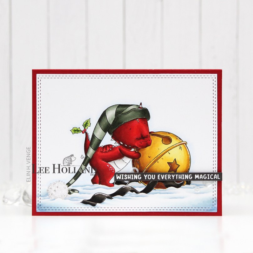 Hi! I’m sharing a Christmas card today, featuring the Dragon building a snowman image from Lee Holland. He still has his Ultimate Christmas bundle and Ultimate Dragon bundle at a whopping 60% discount with the code CHRISTMAS60, but the offer expires today, so you’d better be quick if you want to get them.