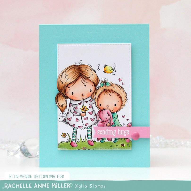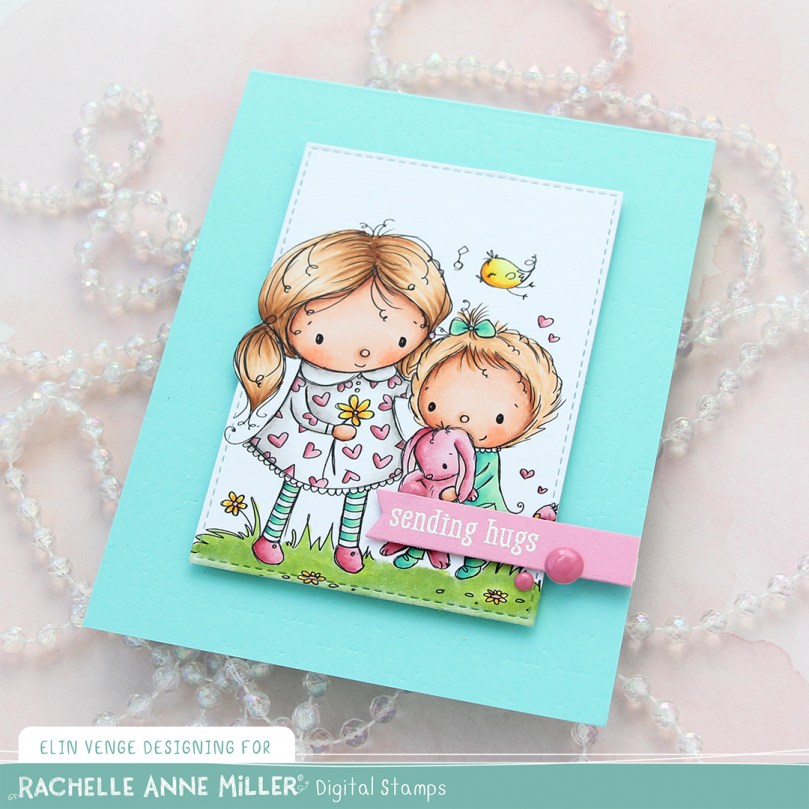 Hi! I have a super simple card to share today, featuring this adorable Sisters image from Rachelle Anne Miller.
