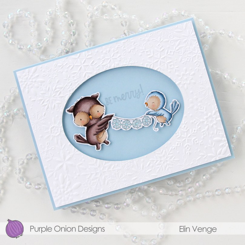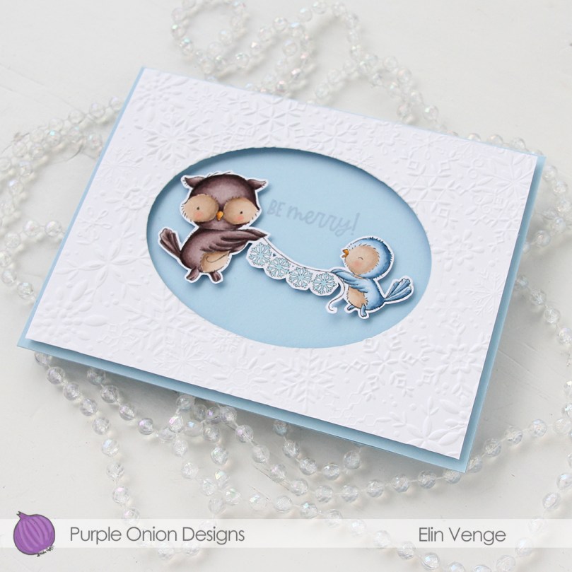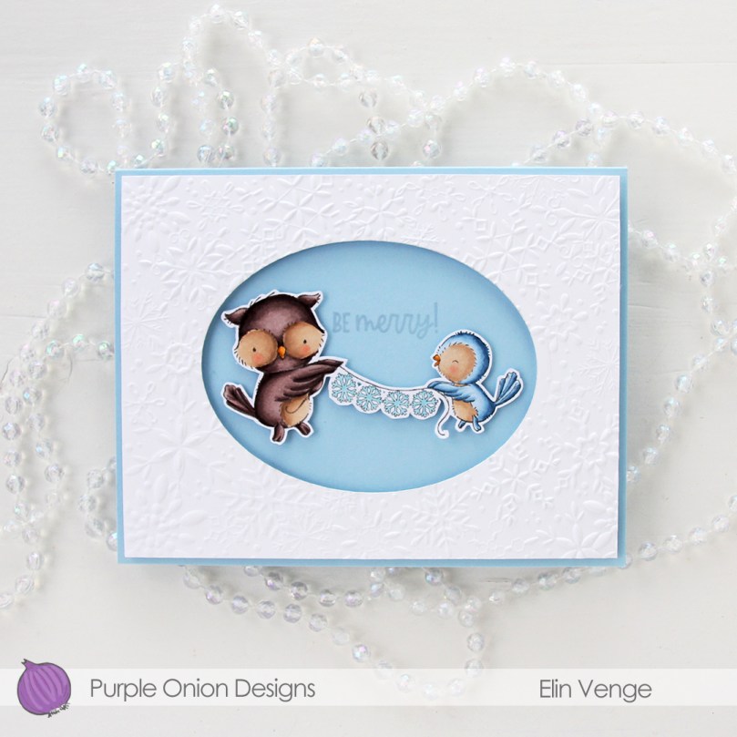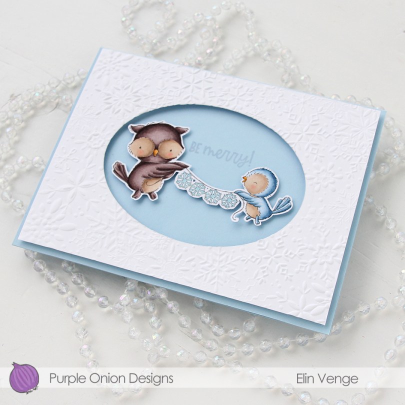 Today I’m sharing a simple one, featuring Shirley and Sharon, this owl and smaller bird with a snowflake garland between them. This image doesn’t need to be used for Christmas either, it would be great for a wintery birthday card.