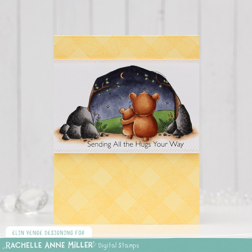 Hi, crafty friends! Rachelle Anne Miller has a new release out today, and I couldn’t pass up this Starry Night Bears image. I love the two bears looking up at the night sky, and the scene is so wonderfully framed, Rachelle knocked it out of the park with this one. If you use the code ELINVENGE at her store, you get 10 % off.