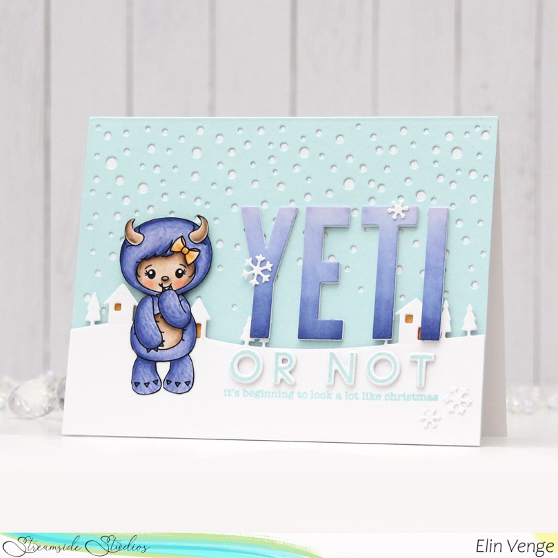 To me, this card is different. Not just because of the colors, but I usually create a panel from my coloring and go from there. For this card, I fussy cut the yeti from the