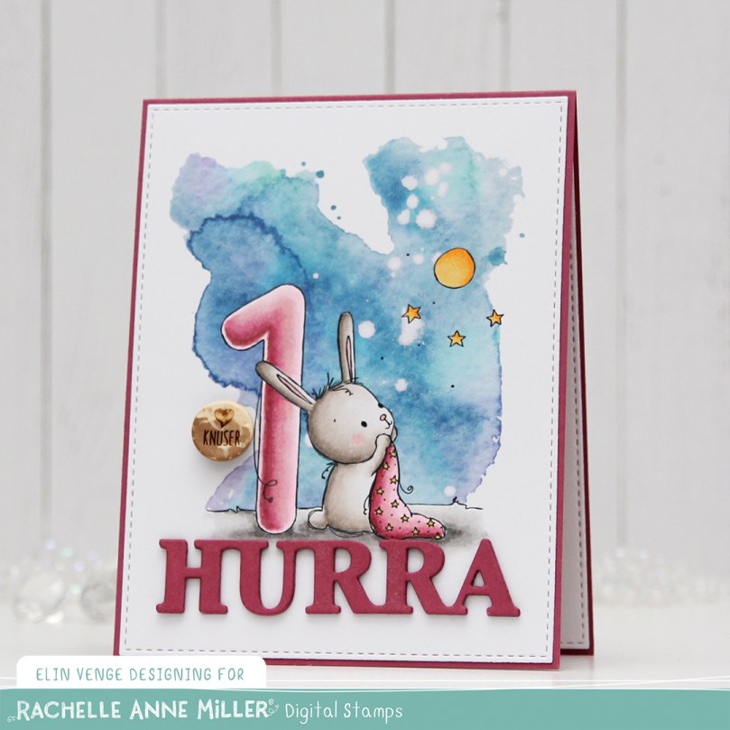 Hi, crafty friends! The new release from Rachelle Anne Miller is a big one, it’s animal numbers from one to ten. I’m starting with One Bunny on today’s card, but I might just have a larger number up my sleeve a little later on. If you want to have a look at all of them, they can be found over at Rachelle’s store here.