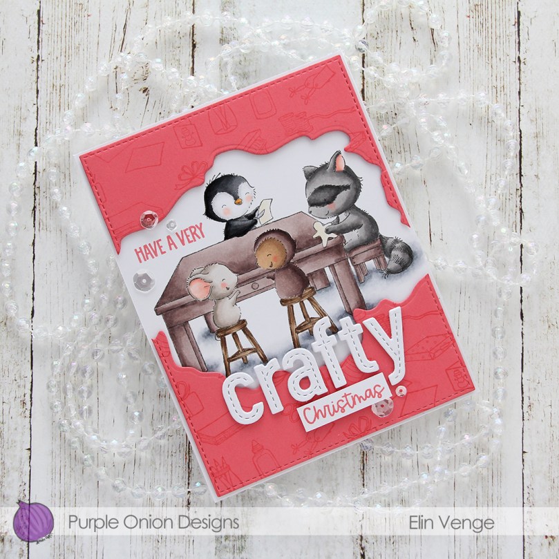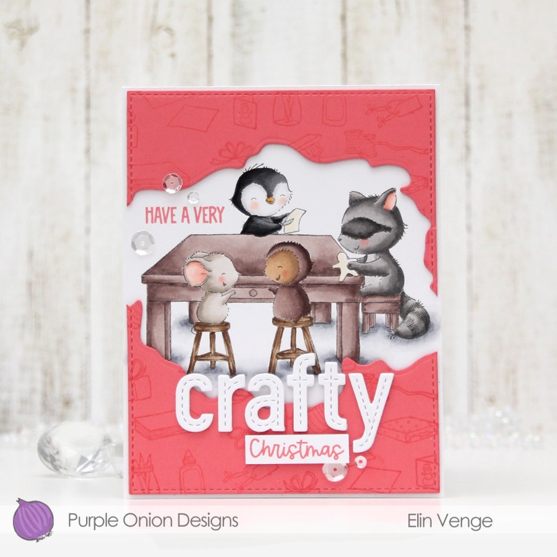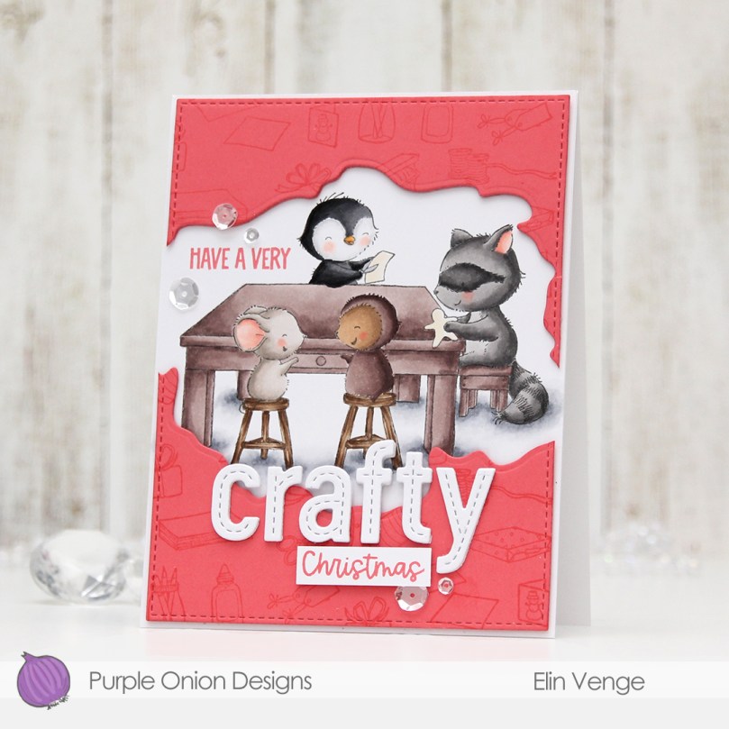 Hi, crafty friends. It’s the third Thursday of the month, which means it’s time for Get Cracking on Christmas. Jenn Shurkus started the Get Cracking on Christmas series years ago, and it’s an awesome way to get started on holiday cards early and not be swamped come November. It’s also a great opportunity to use stamps and dies that you may have purchased for last year’s holiday season, and never got around to using, because time simply ran out. That’s what I’m doing today, keeping the focus entirely on a stack of critters from the No One Stacks Up stamp set illustrated by Stacey Yacula for My Favorite Things.