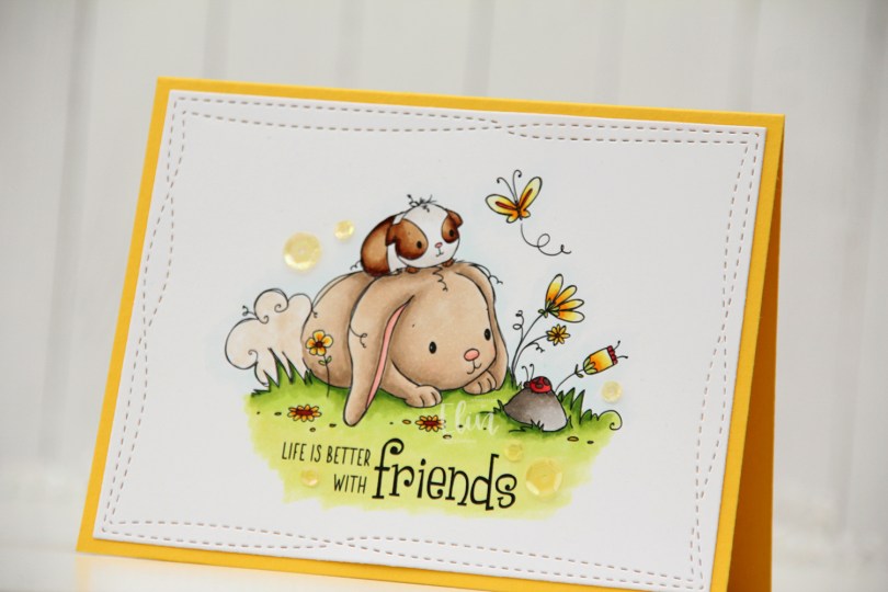 I added a few yellow sequins from the Seashore mix from Little Things from Lucy’s Cards around the image and sentiment, and my card was finished.