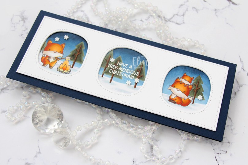 I’ve made a slimline card this time, with images from a Stamptember collaboration set from Mama Elephant and Simon Says Stamp that I colored up in November 2020. These have been sitting on my desk for a while, and I always planned on creating this window design with them – Get Cracking on Christmas is the perfect opportunity to execute plans you’ve had for a while, but not had time for.
