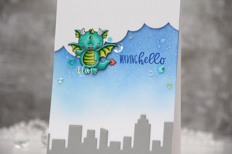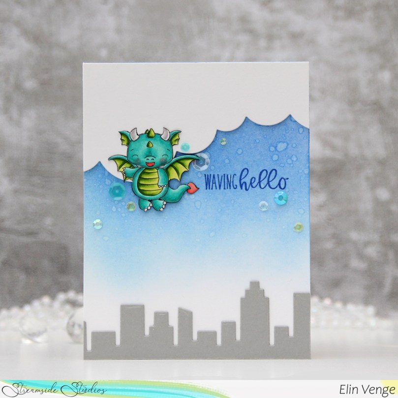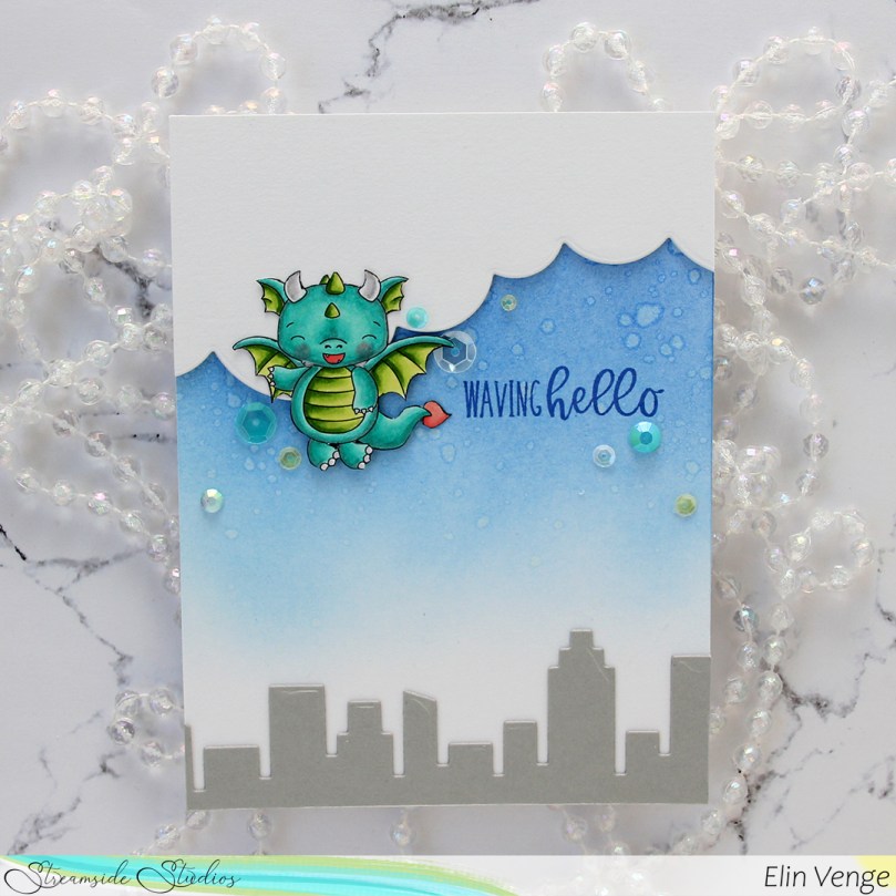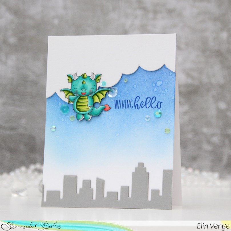 Hi, crafty friends! If you’ve been here before, it won’t come as a surprise that I love coloring dragons. Today I have a cute dragon card to share, featuring the Flying Dragon from a digi stamp set from Streamside Studios released last month.