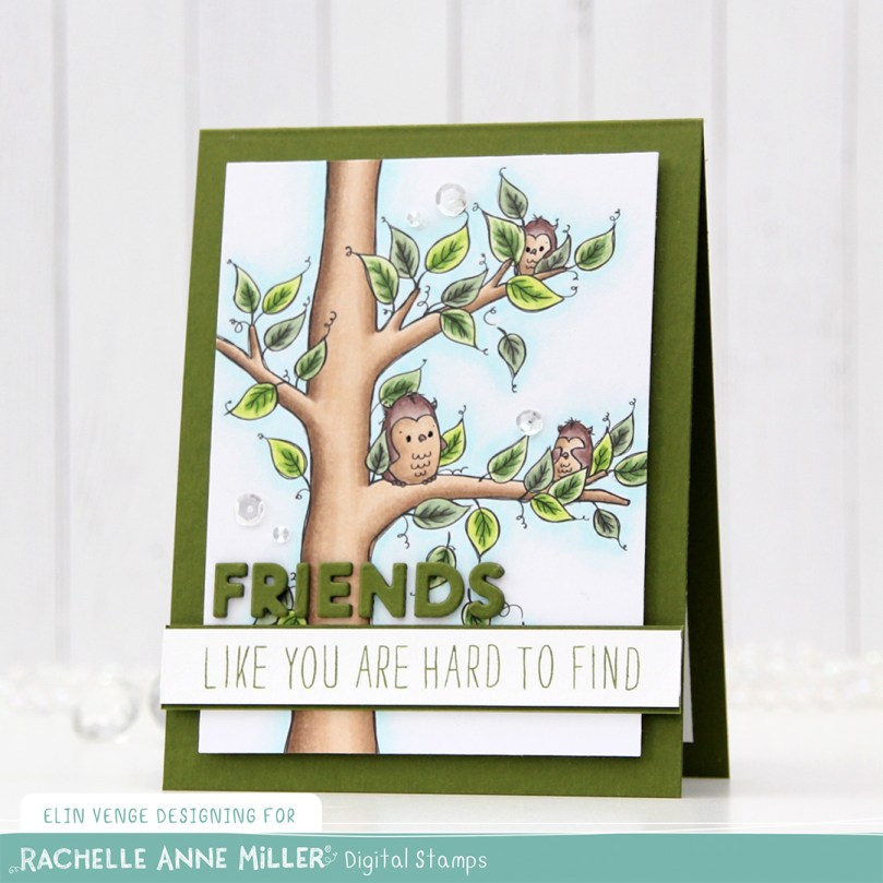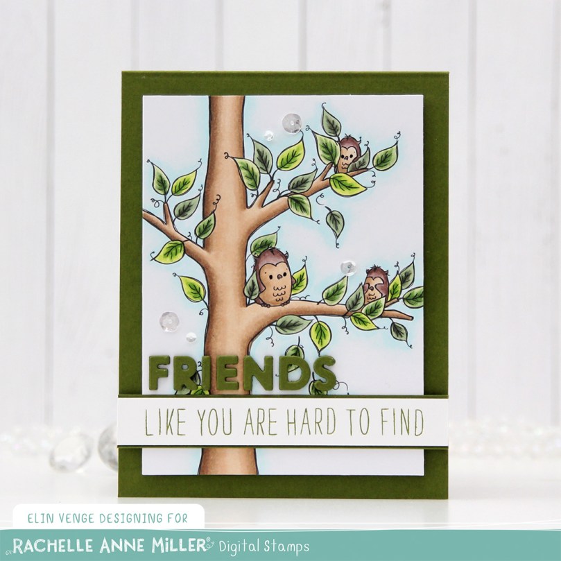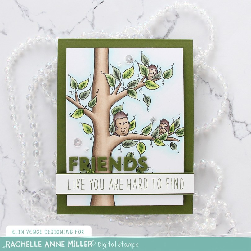 Hi, crafty friends. I have a card to share today that isn’t holiday related. I know I’ve made a lot of Christmas cards lately (I love making them), but I’m shaking things up today with this adorable new Owl Find You! image from Rachelle Anne Miller.