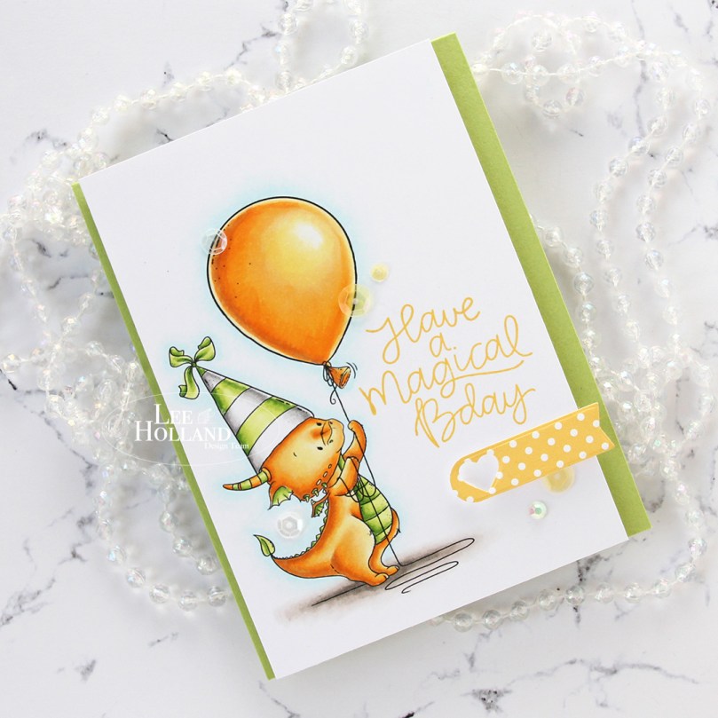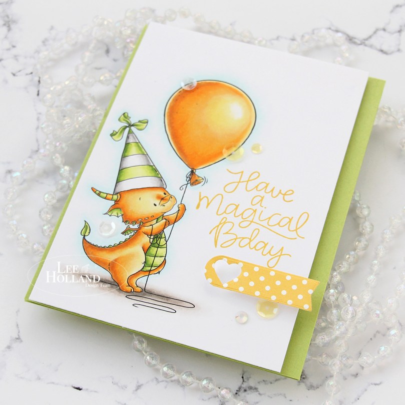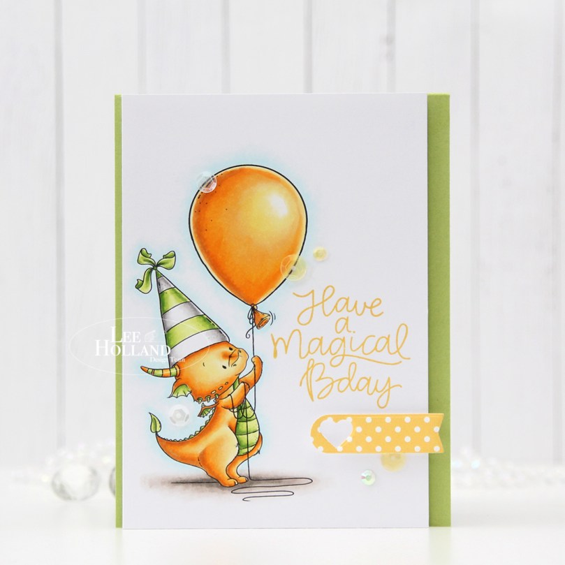 Hi, crafty friends! Lee Holland’s dragons are one of my favorite things to color, and when I can color a dragon holding a balloon, I almost do a little happy dance.