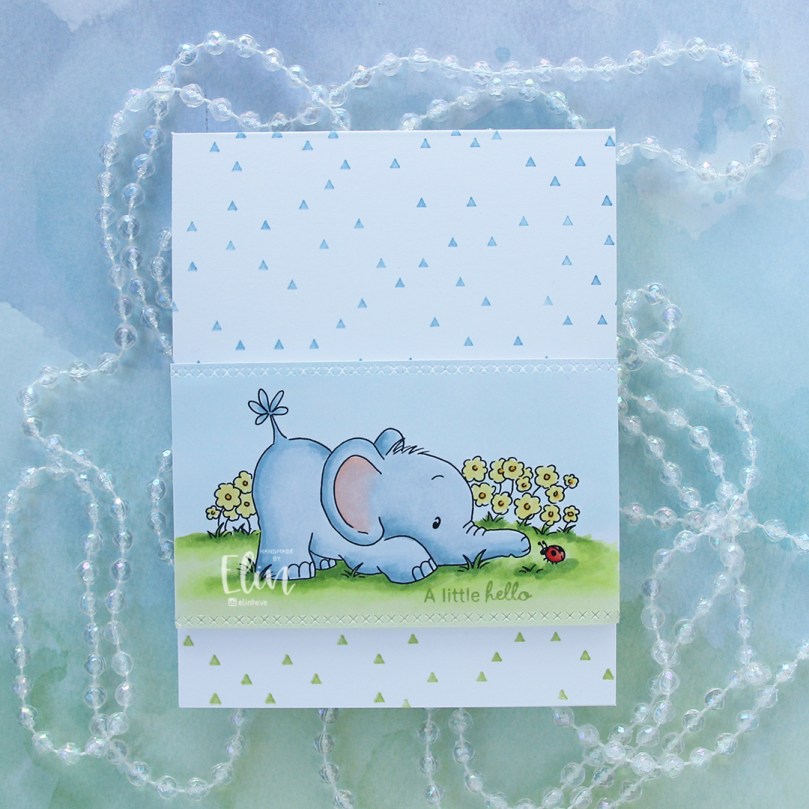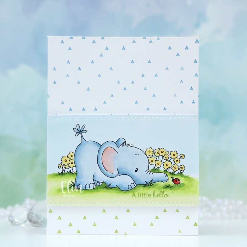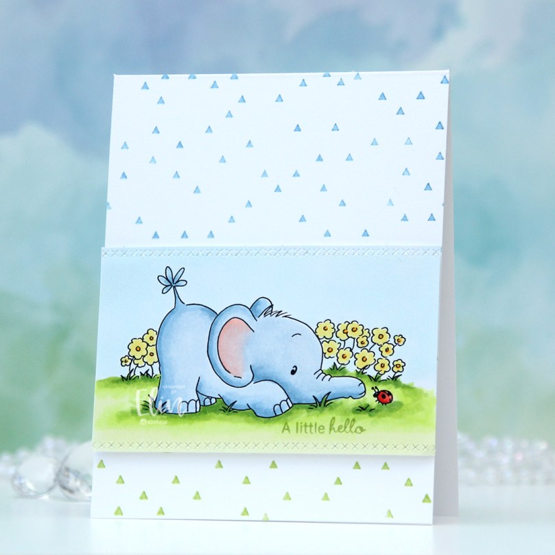 Hi, crafty friends. There’s a new release from Lili of the Valley coming in just a couple of days. It’s just one stamp set, but it’s the most adorable set ever. Four elephant images that work for a variety of occasions, and I’ve got a sweet hello card to share today with my favorite of the four images.