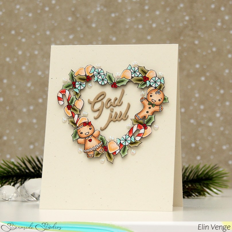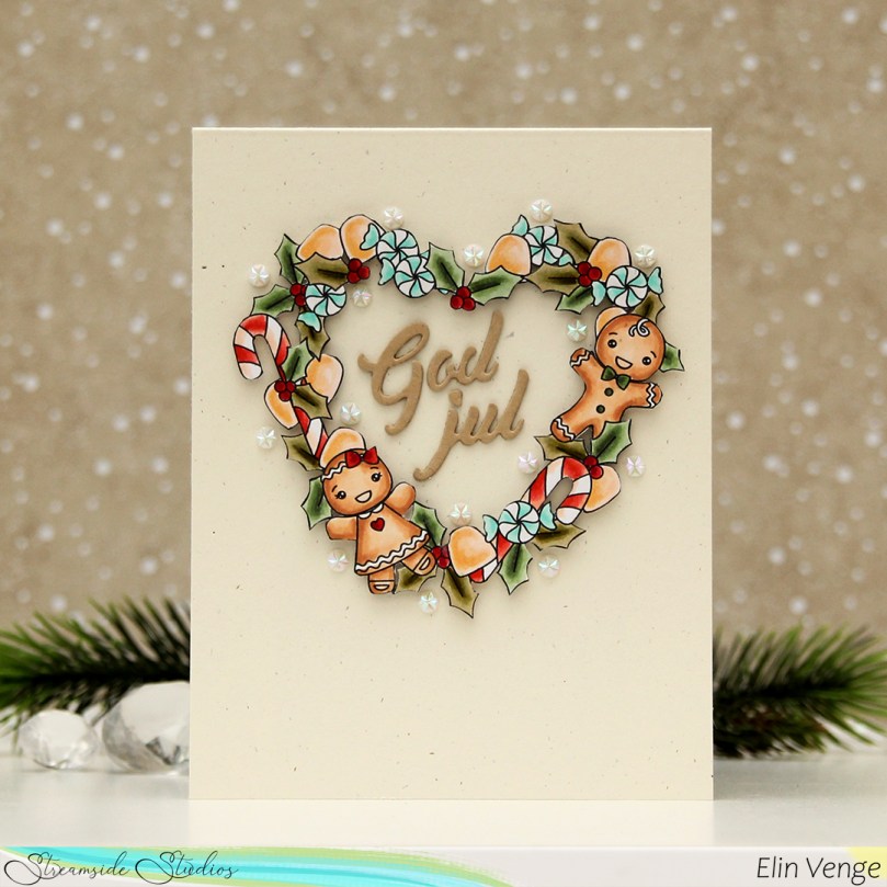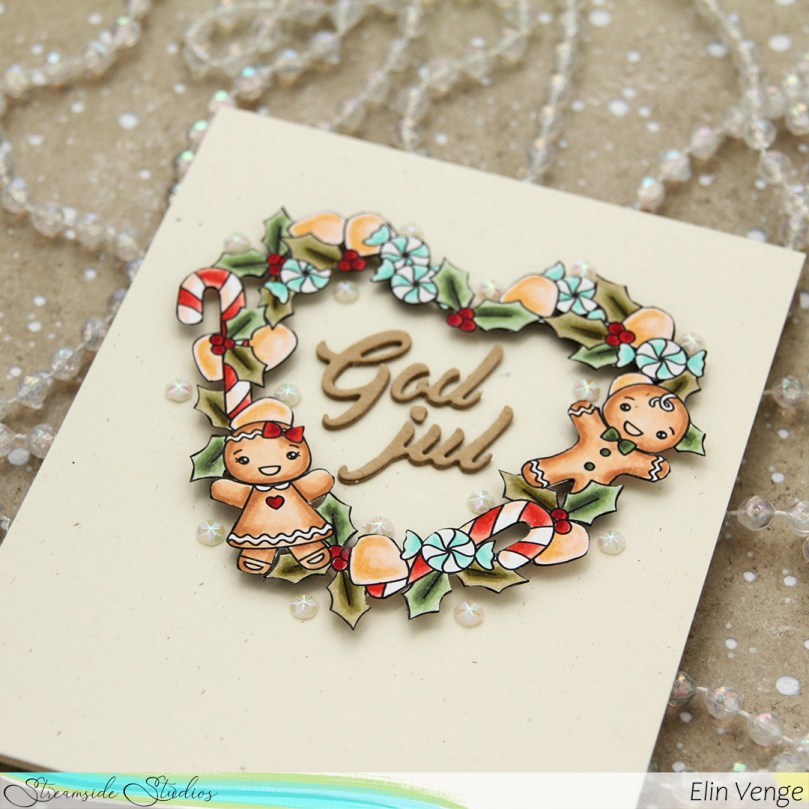 Hi, crafty friends. 40 days until Christmas, and I’m still in a holiday card creating mode. This time, I’ve got a fun wreath to share using the new Sweet Christmas stamp set from Streamside Studios.